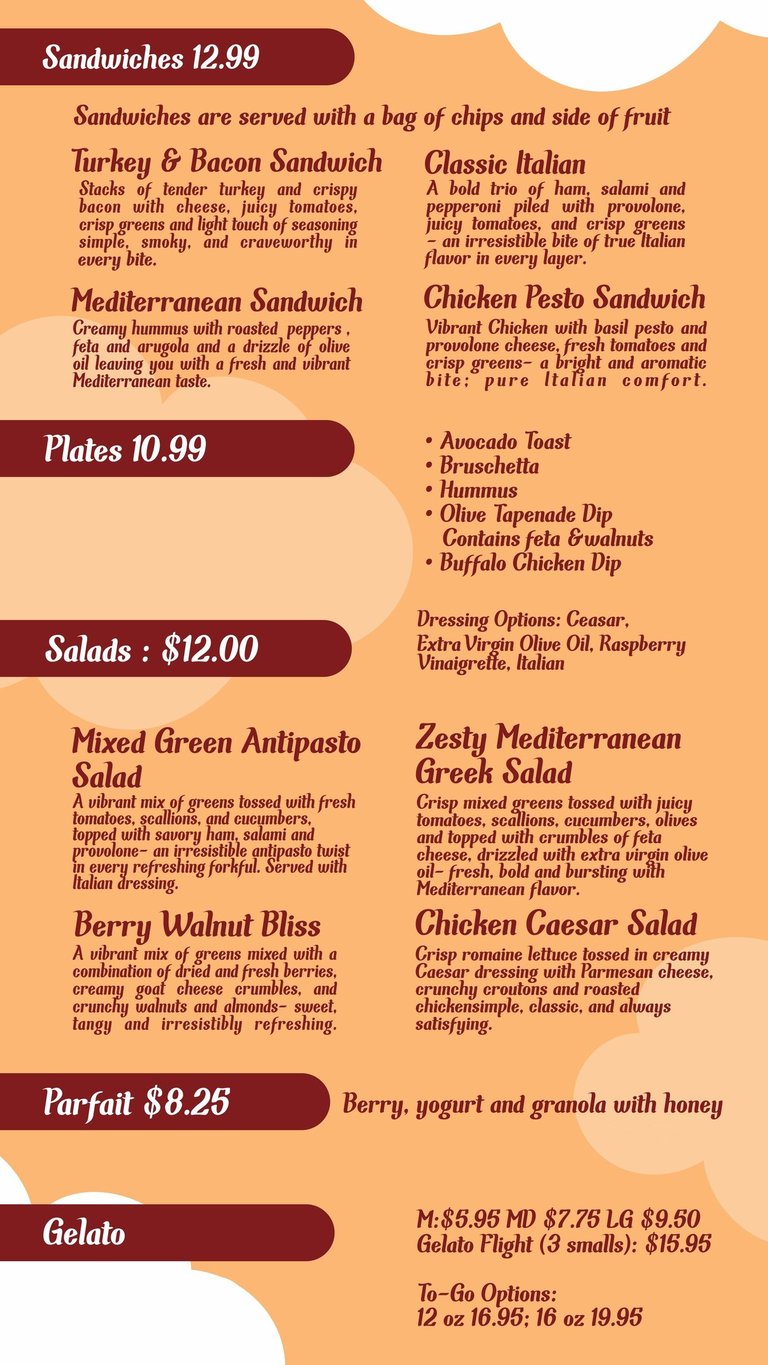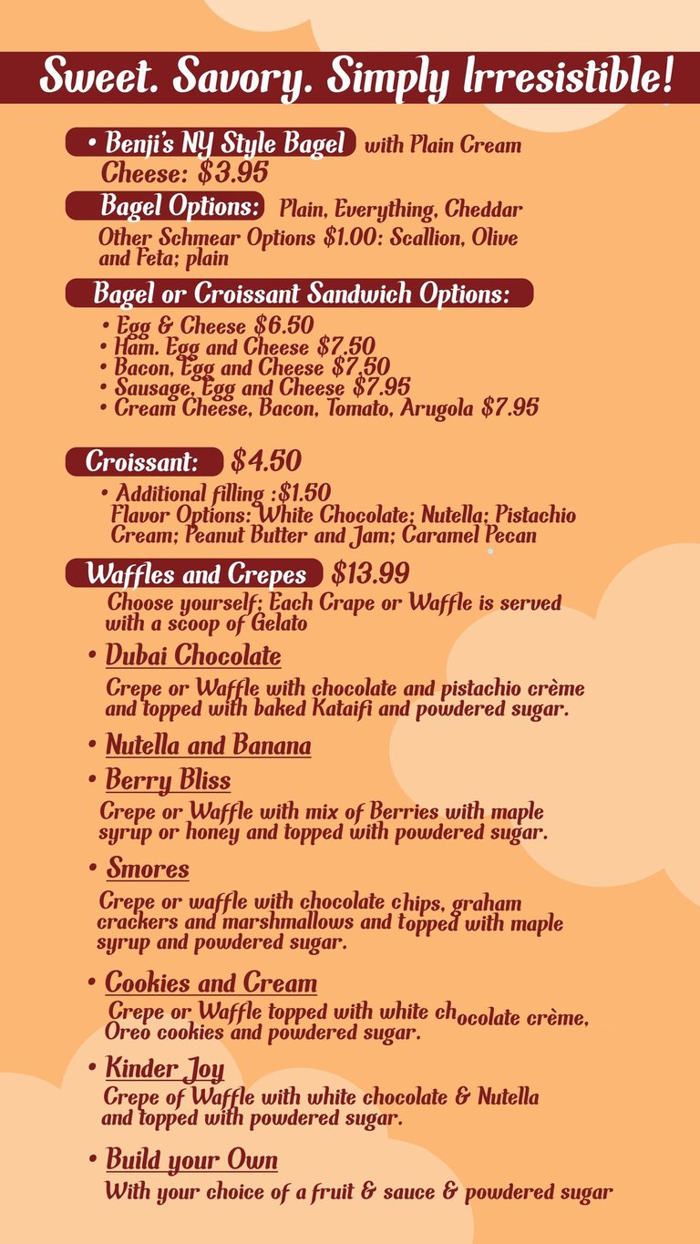 Discover our new seasonal menu with special offerings—from refreshing beverages to sandwiches, bagels, gelatos, and more.